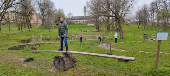 Ezera krastā atrodas fotogēniskais Peldu tornis. No neogotikas formās celtā torņa palikušas pāri vien ārējās sienas, bet tas nemazina kopējo efektu. Peldu tornis ezera krastā, tam blakus – koka lapenīte un laipa. Jāatzīst, ka vietējiem iedzīvotājiem ekskluzīva atpūtas vieta.